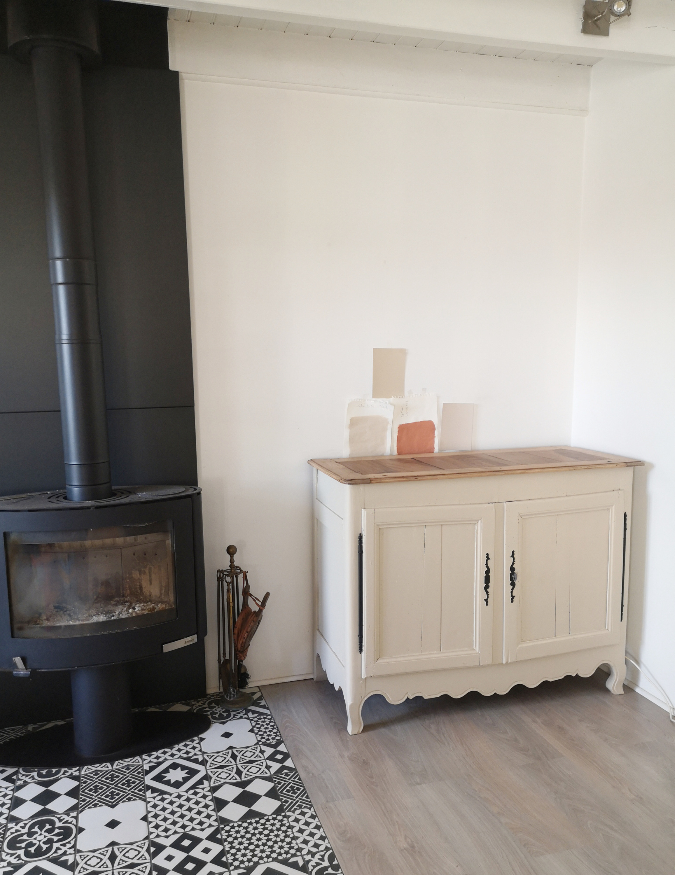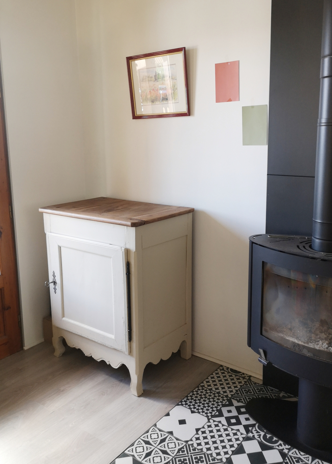 Peinture coloris blanc perle, plateau teinté et vernis